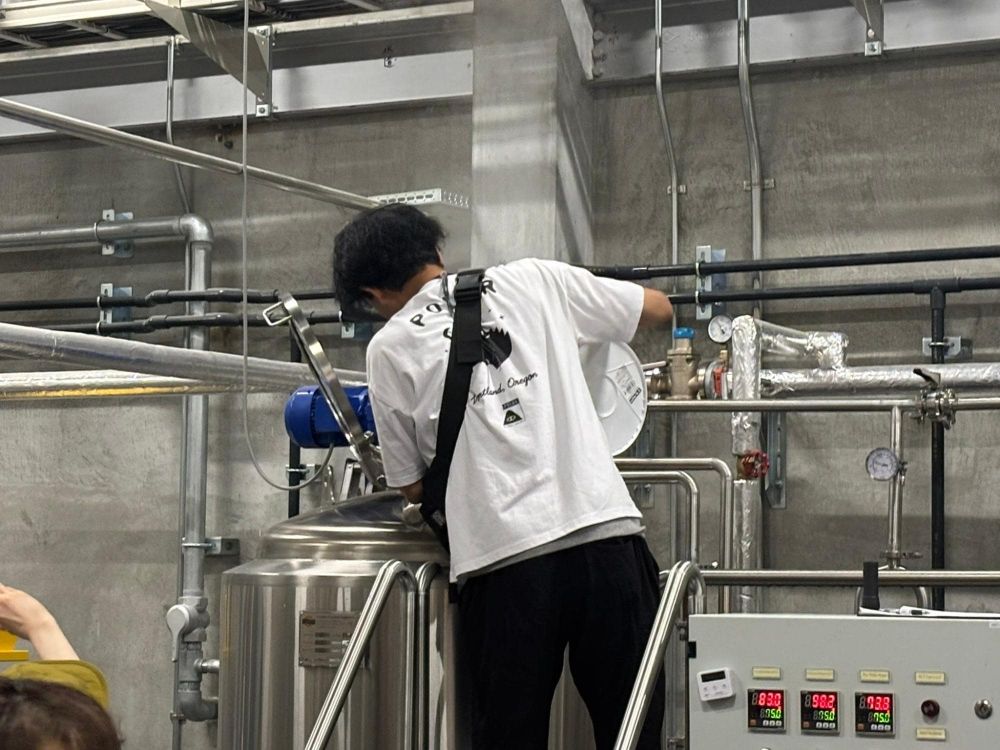 そして、みんなで煮沸している麦汁の中にホップを投下しました。