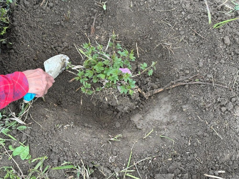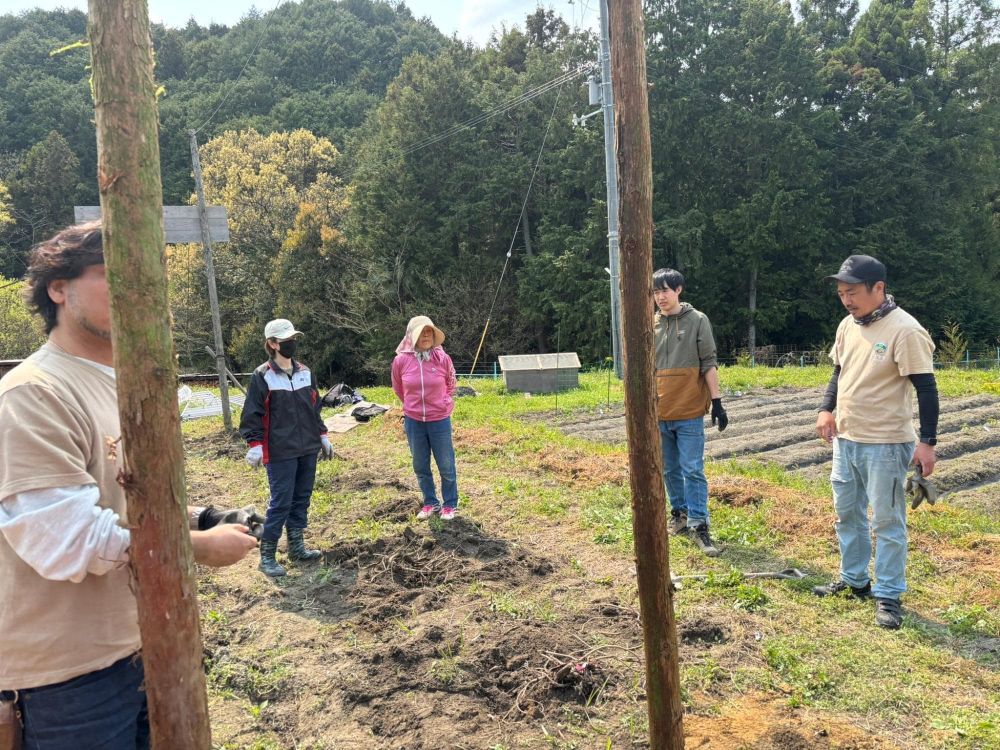 春にまだ手のひらサイズの芽が出たばかりのホップに対して株拵え(かぶこしらえ)をおこない、無事に成長するための作業を行いました。