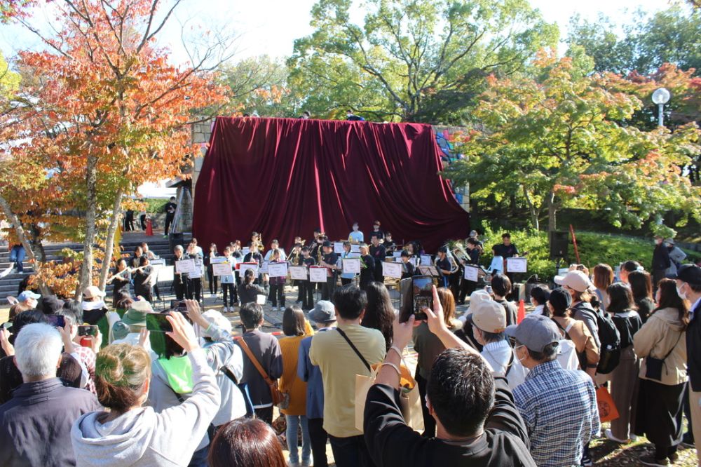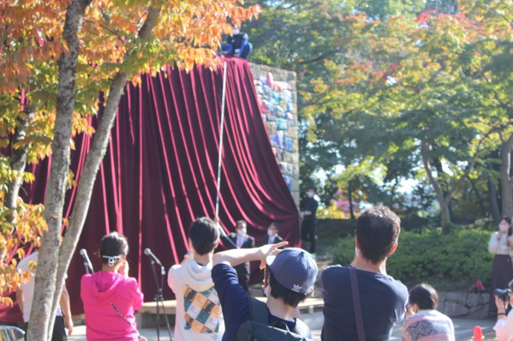 まもなく除幕するようです。金剛東公園がいつも以上に盛り上がった瞬間ですね。