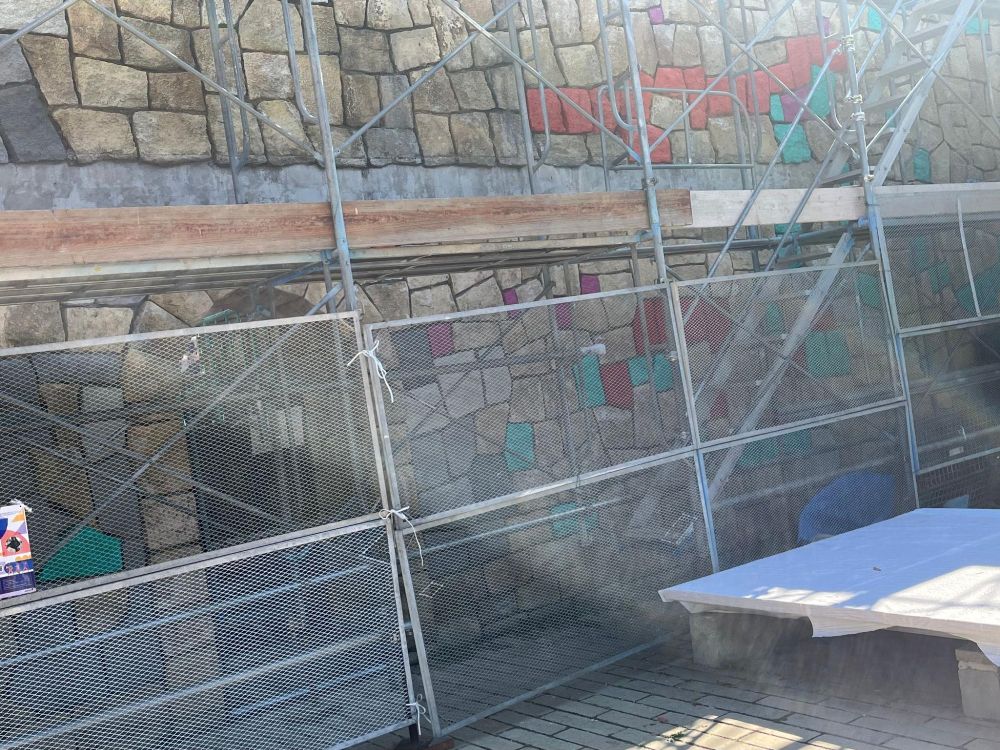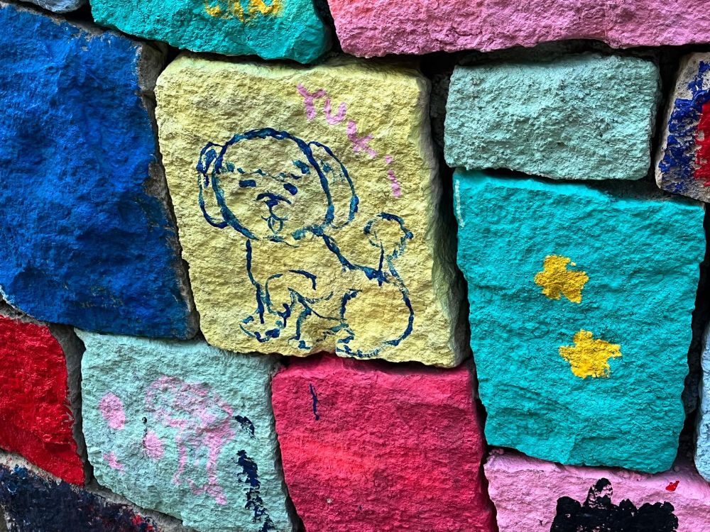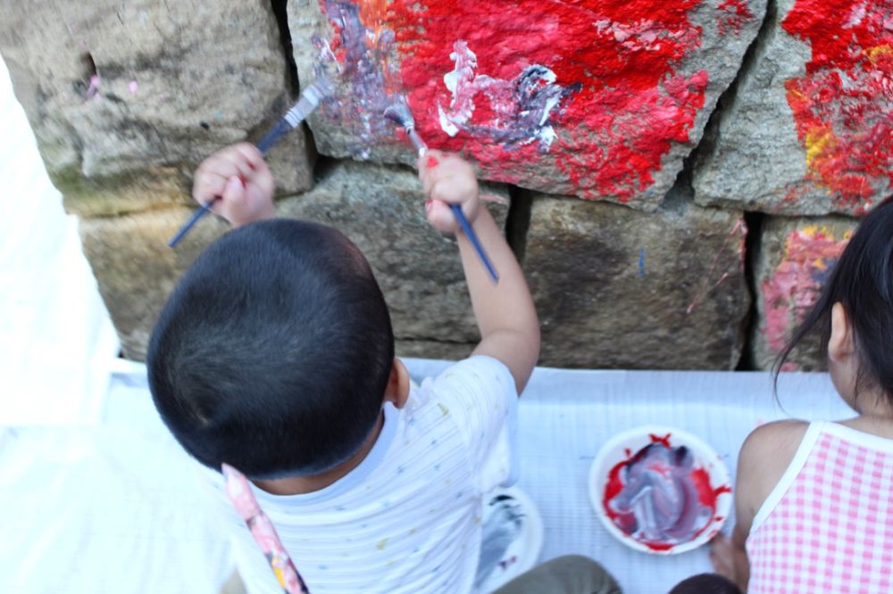 いろんな色でペンキがされた後に、上からもいろんな絵が描かれています。これを描いた子供たちが将来大きくなったときにこの作品を見てどう思うのか、そんなシーンを早くも想像したくなりました。