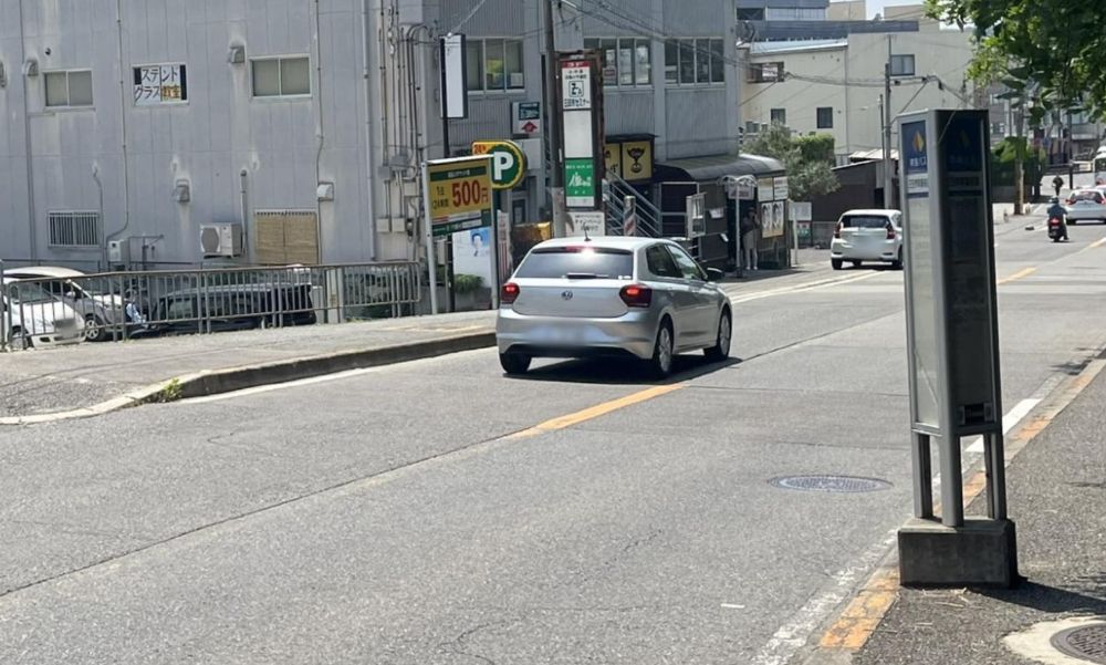 笠松稲荷神社から旧三日市交番へは、下り道を三日市町駅に向かいます。ここも歩道があるので安心です。