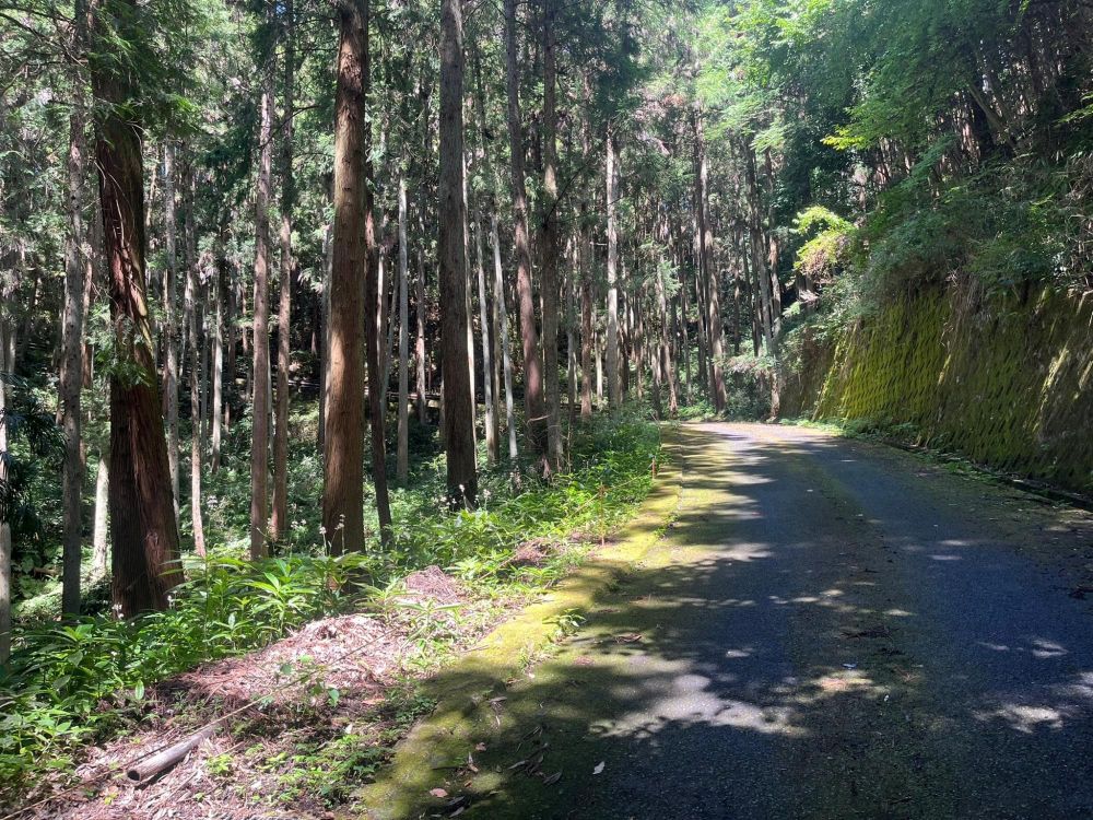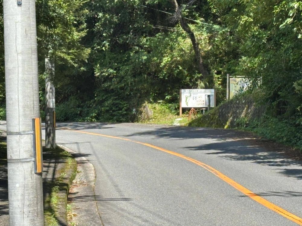 観心寺からはバス道をなだらかに下っていきます。この道は歩道があるので安心です。