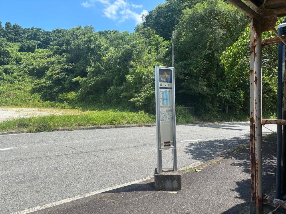 葛ノ口バス停です。まっすぐ歩けば昇條坂を下って河合寺、河内長野駅方面に行きますが、笠松稲荷はバス同様に左側の道を曲がります。