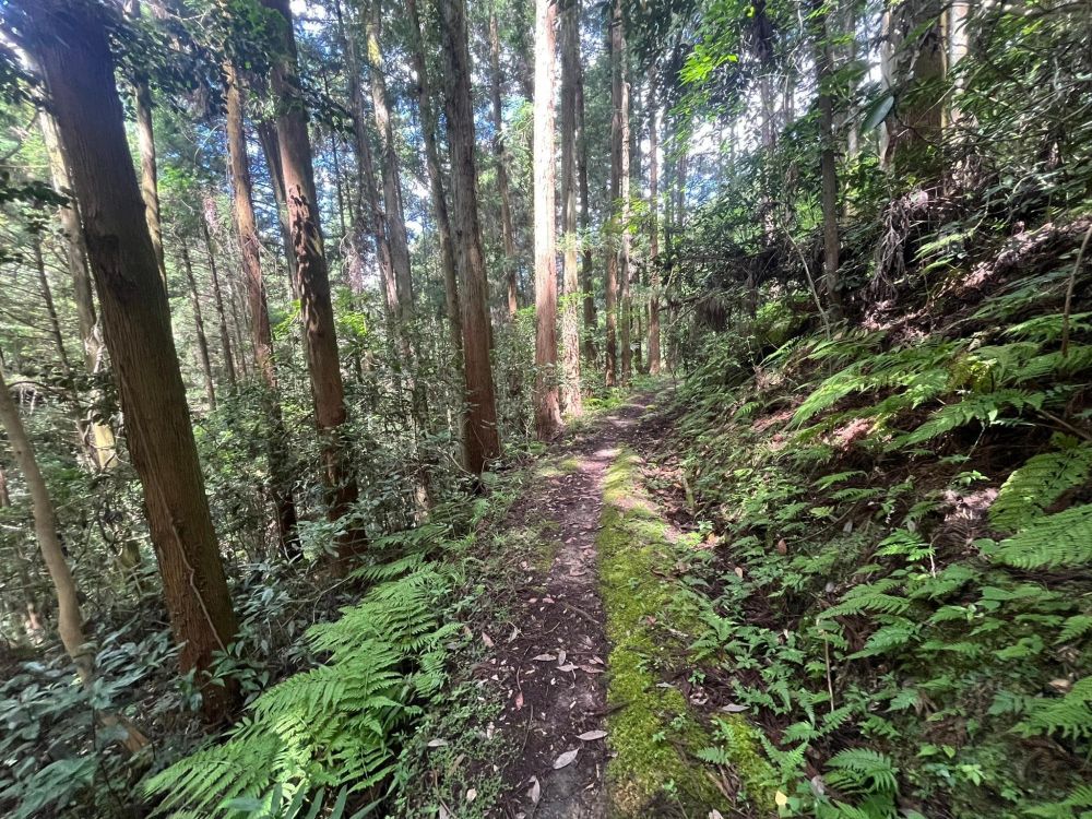 道は思ったほど悪くなく歩きやすいです。高い木々に囲まれながら緩やかな登りを歩いていくと、