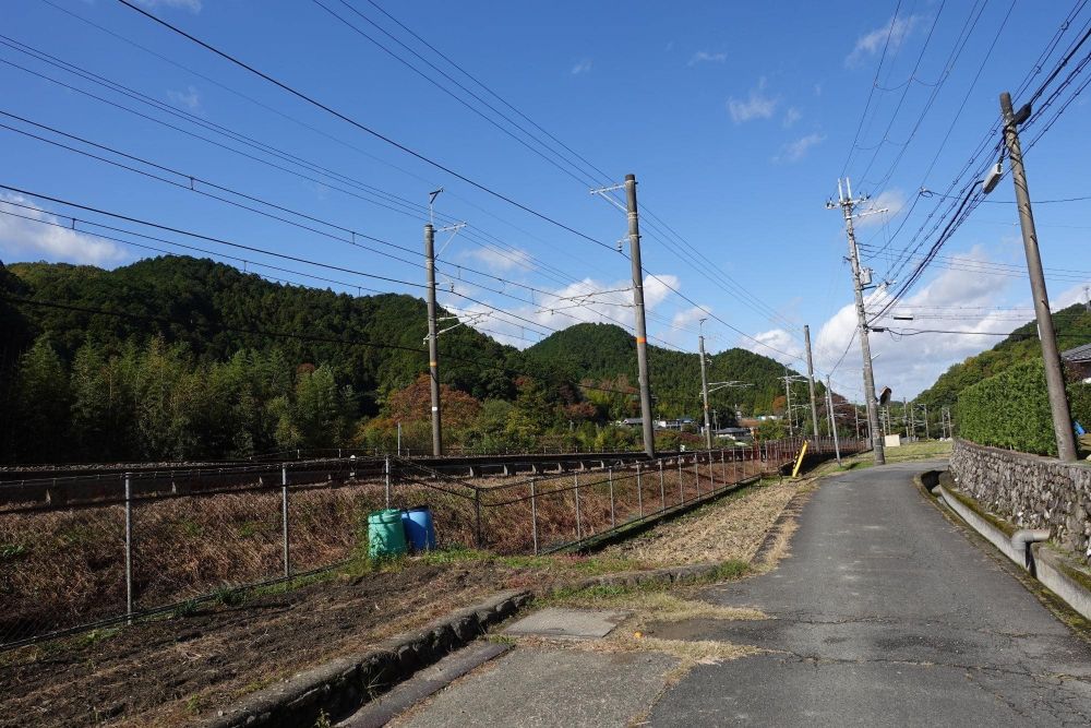 大地の里友邦から延命寺へは、しばらく線路沿いの道を歩きます。河内長野もこのあたりに来ると、のどかな田園地帯が広がっています。