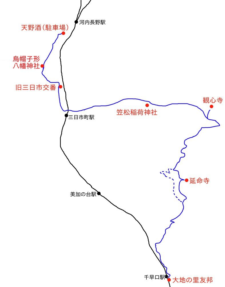 毎年各自治体が持ち回りで行っているイベントで、今年は河内長野で開催されるとのこと。参加費は無料で、事前申し込みも不要です。スタート地点の「大地の里友邦」に9:30~10:15までに行けば参加できます。そしてゴール地点の天野酒(西條酒造)酒蔵の駐車場に15:30までに行けばよいという内容。10kmなので2~3時間程度で回れるコースとなっています。
