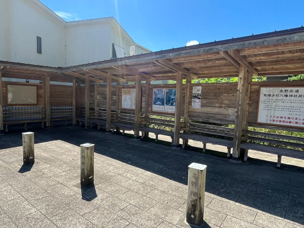 ちなみに烏帽子形八幡神社の入口の道路の反対側にはベンチがあるので、休憩に最適です。