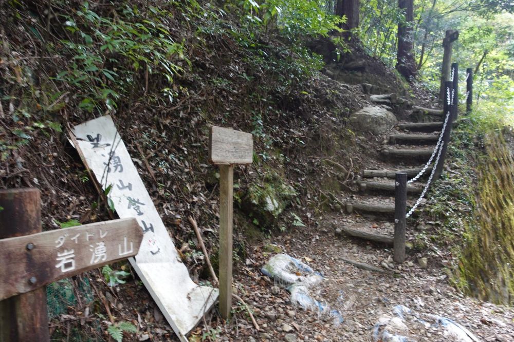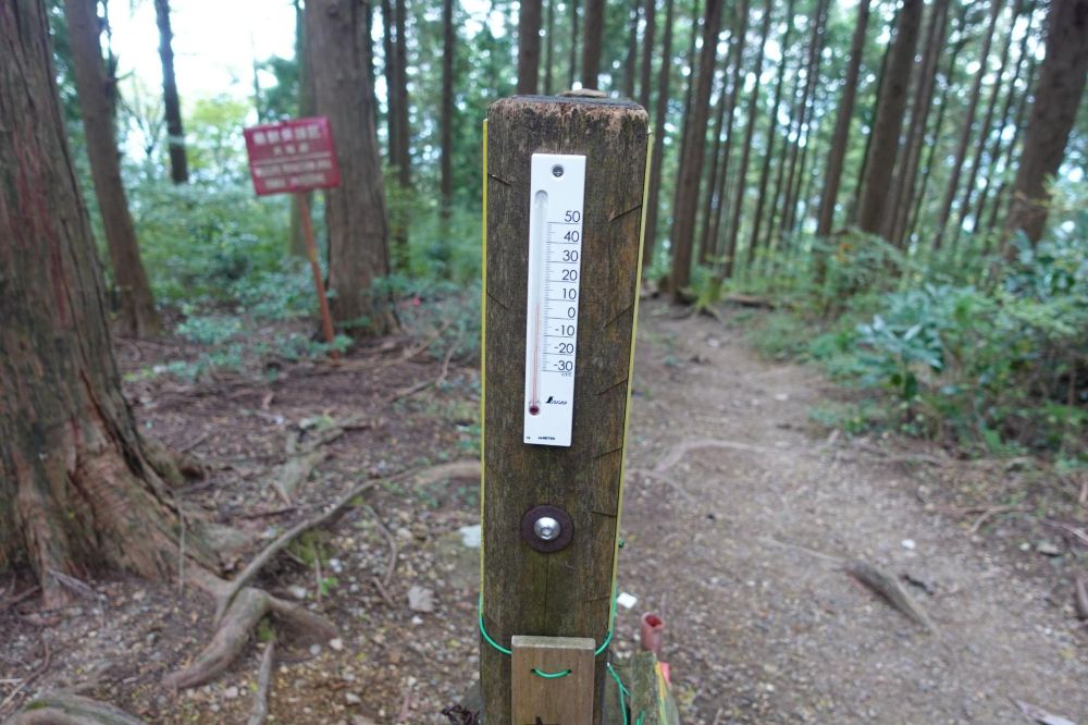 岩湧寺からの登山道は急な道のルートと緩やかなルートがあり、急なルートで一気に登れば、この温度計がある九合目近くに最速で行けます。