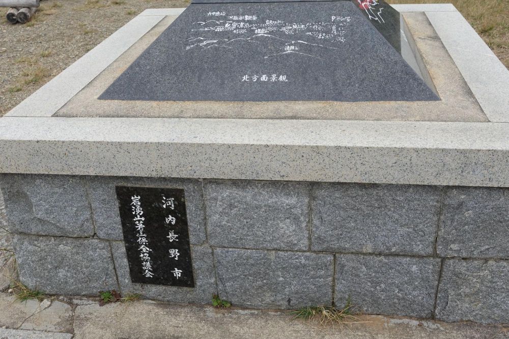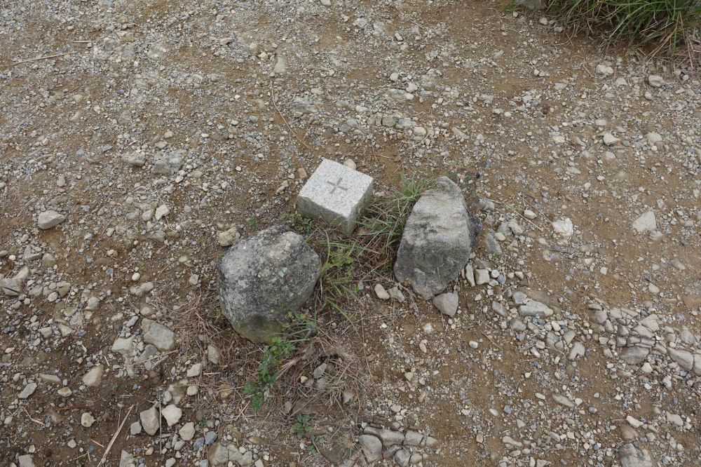 少し進んだところにある道の途中に、このようなものがありました。これが頂上を意味する三角点と思われます。だから広場ではなく、この石の場所が標高897メートルの岩湧山頂上地点。そして目の前には、いちばん最初の画像「岩湧山」と大きく書かれた看板がありました。