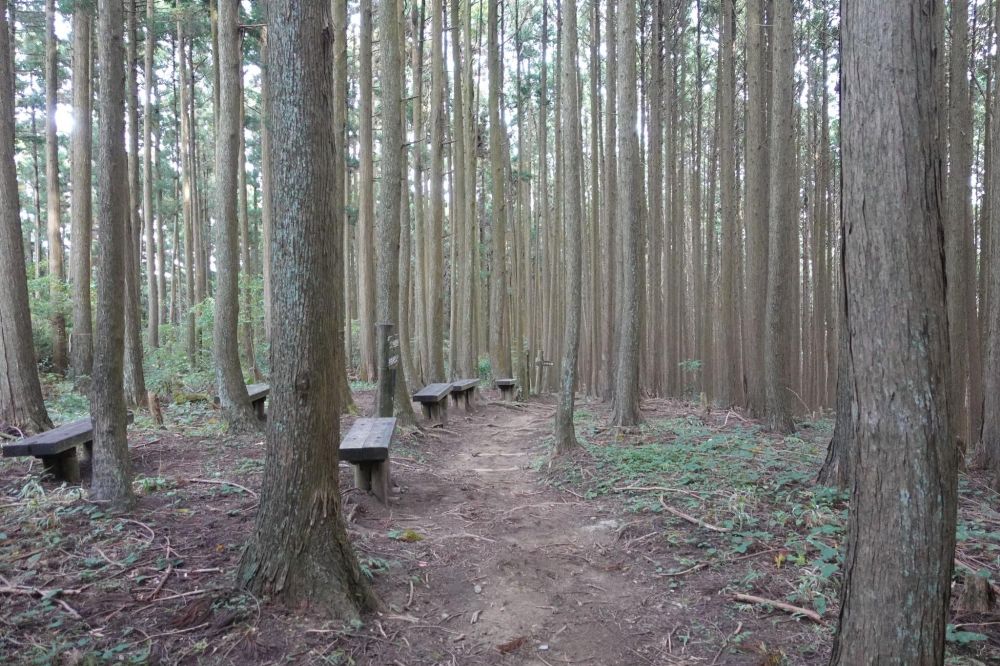 登山道は、初心者でも迷うことないように、道しるべもしっかりありました。このように要所要所にベンチがあり、休憩することもできました。ゆっくりマイペースを守れば、初心者だって標高897メートルの山もクリア可能です。