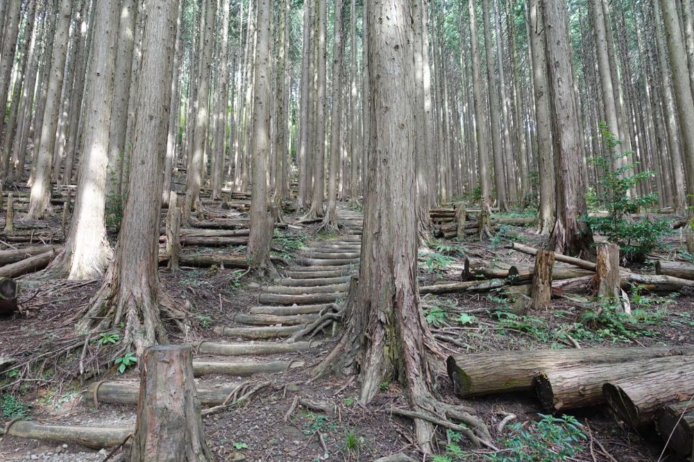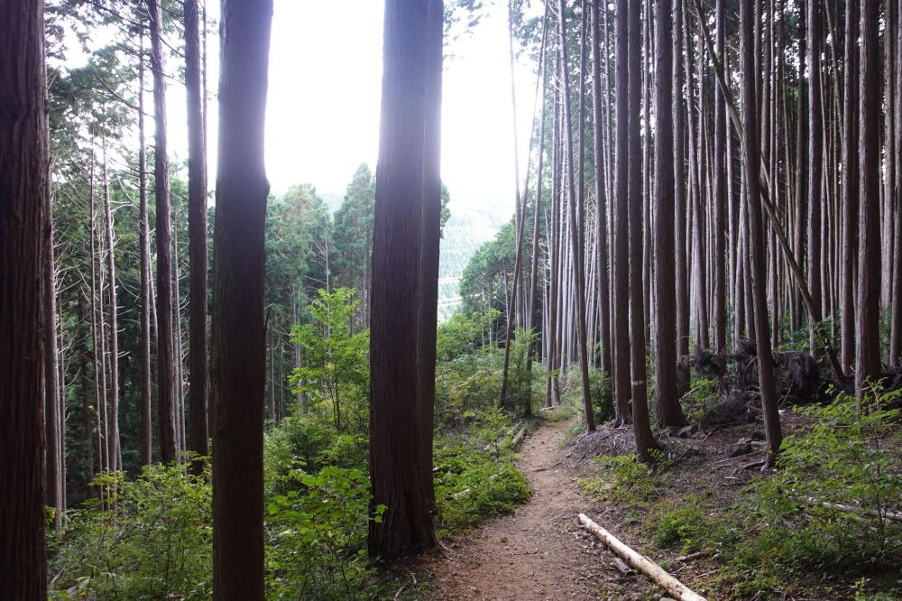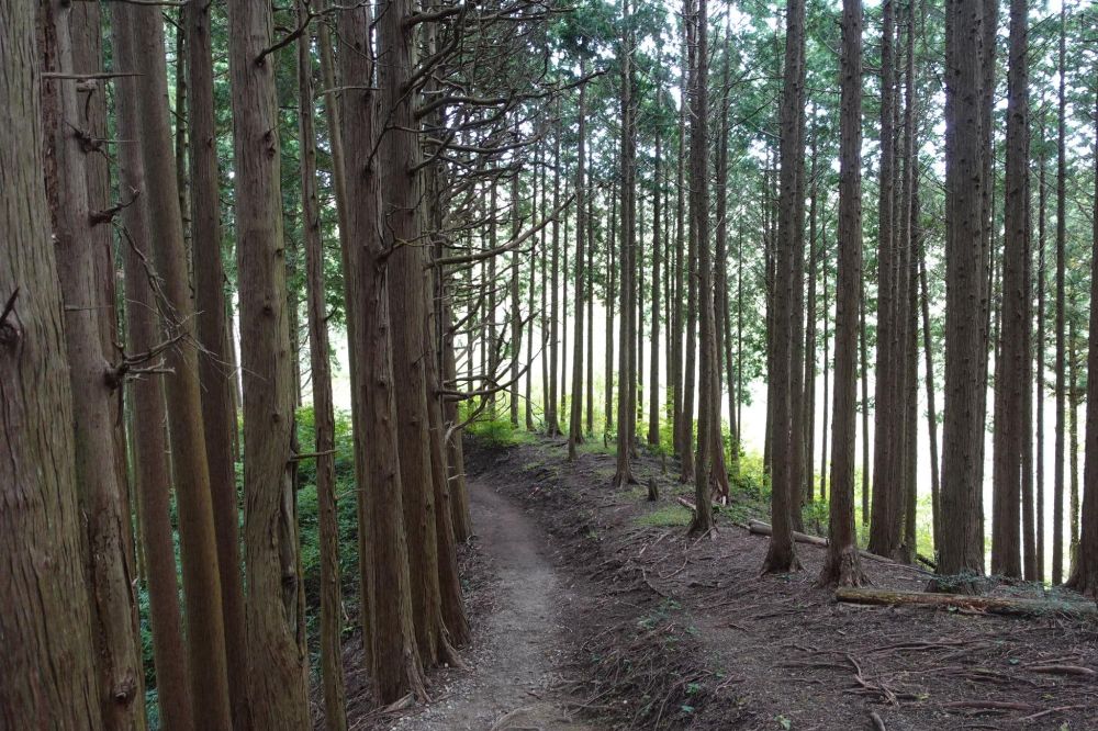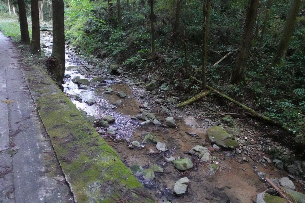 気が付けば、むき出しの地面がコンクリートの道に変わっていました。どうやらこの辺りは林道で、車も通れるようになっていました。これで少し安心。とはいえまだまだ山の中。これは結構急で、足のあたりがガクガクするほどの下りでした。