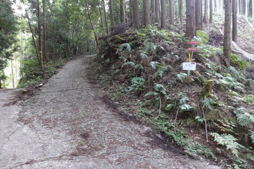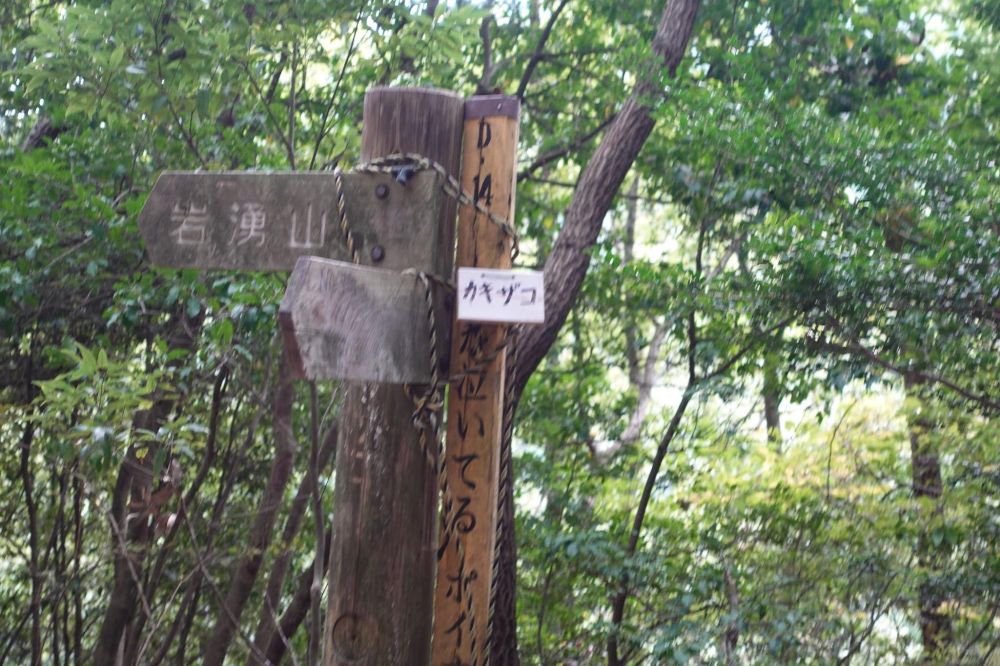 しばらく急な坂道を登るとこの標識がありました。「カキザコ」とあります。このカキザコとは尾根の名前なのですが、登山のルートを見ると滝畑ダムからこのカキザコまでが急な登りで、ここからは距離はあるけれど緩やかな登りとなっています。