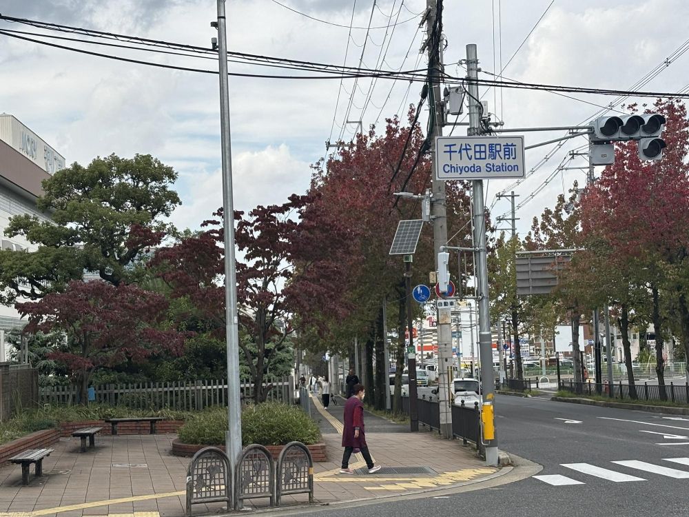 寺ヶ池公園から坂を下りて千代田駅に向かいます。