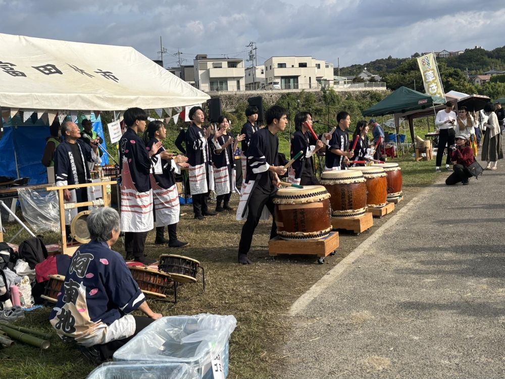 朝一番に河南高校の和太鼓部が太鼓を披露していました。