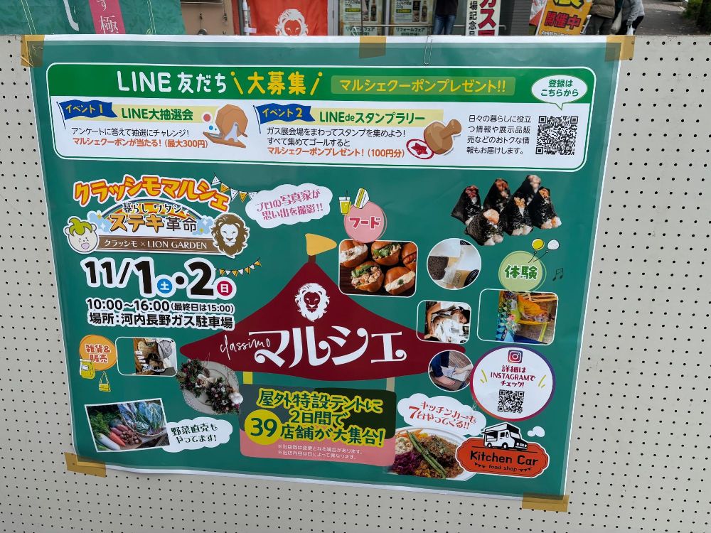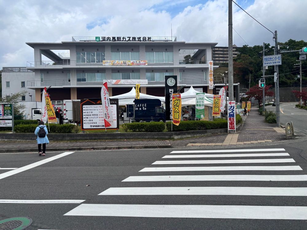 そして図書館前で下車します。道路を挟んだ北側に河内長野ガスがあり、その駐車場でガス展とクラッシモマルシェが行われていました。
