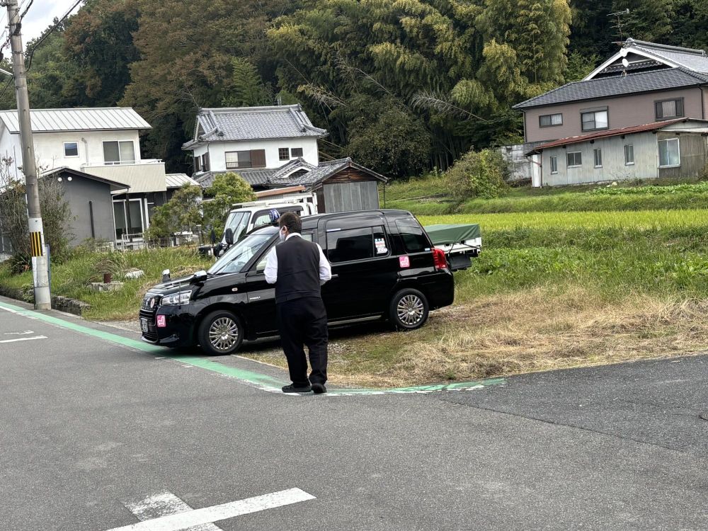 タクシーが止まっているのは、ちょうど彼方上地区の社会実験をしているからです。