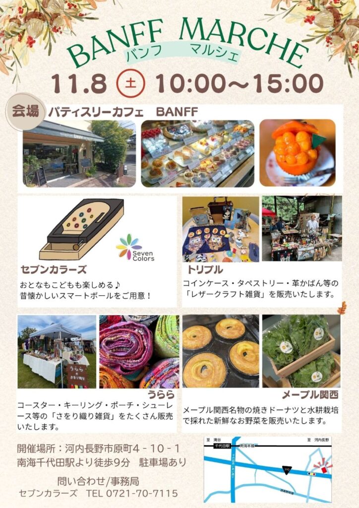 【河内長野市】ケーキがおいしい原町のパティスリーカフェBANFFで11月8日にマルシェが行われます