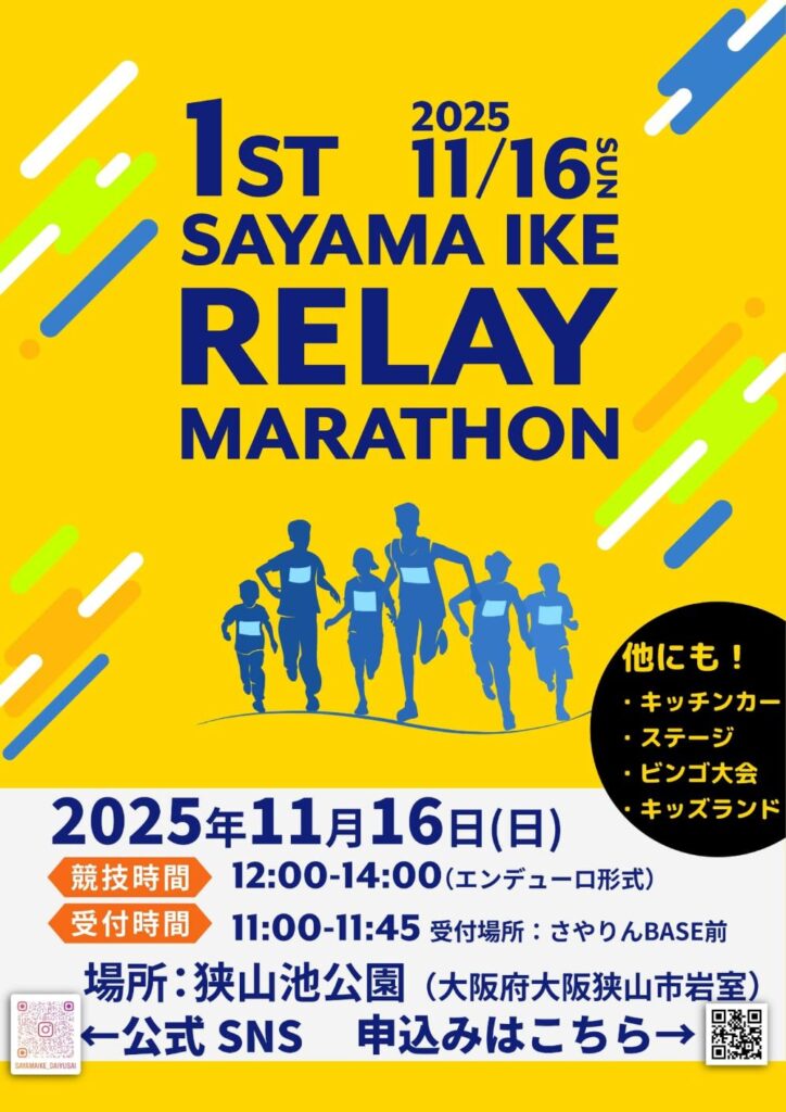 事前登録制でリレーマラソンに参加できます。12時から14時までで、エンデューロ形式(チームで交代しながら長距離・長時間を走り続ける耐久レース)で行われます。参加費はファミリーの部が1チーム 7,000円で、一般、企業の部が1人3,000円 です。当日の参加は不可です。申し込みは本日9日(日曜日)23:59までです。