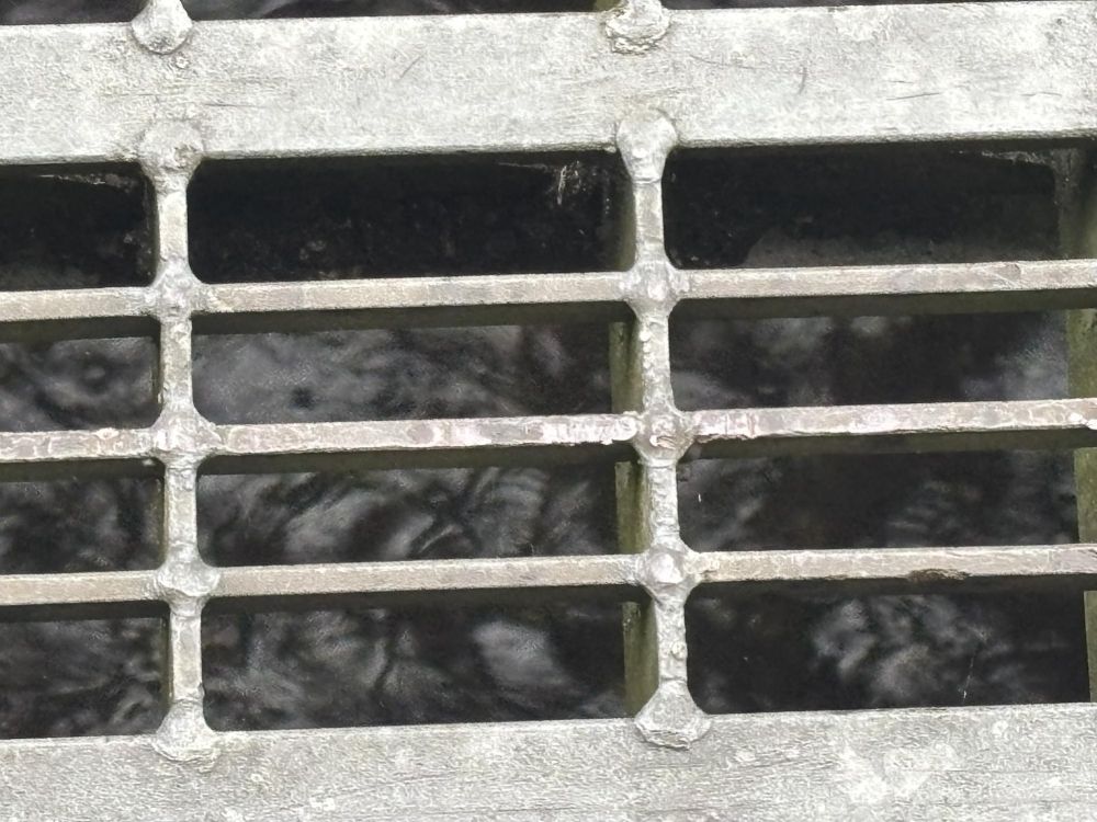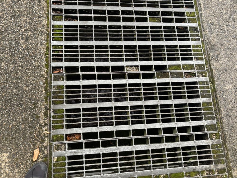 暗渠の上を歩くとところどころに溝蓋(みぞぶた・グレーチング)があり、中の様子が見られます。
