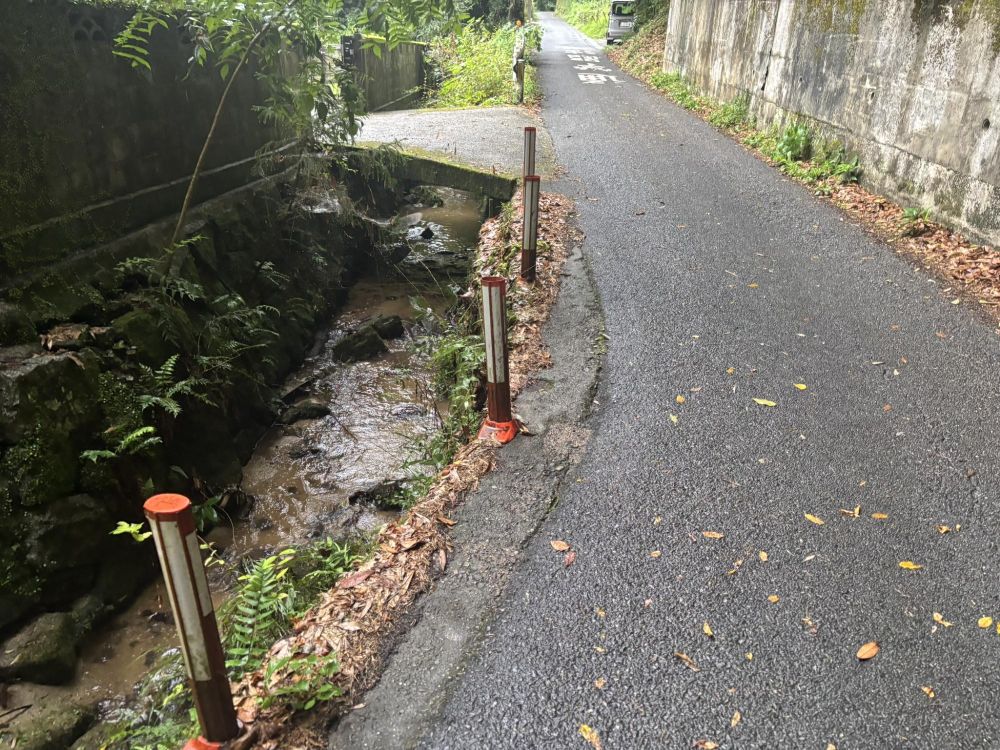 少し開けてきました。上河内の集落に近づいてきたようです。左の道路で色が違うのは暗渠です。