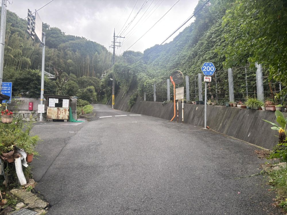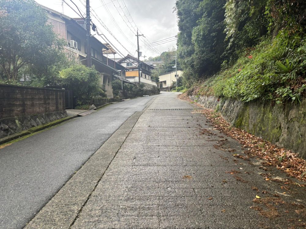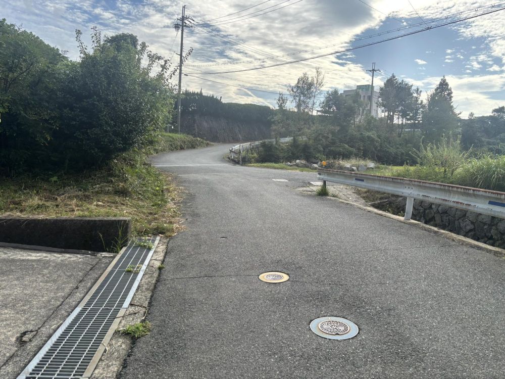 基本は上り坂です。ちなみに道路の右半分の色が違いますが、これはこの場所の下に水路があるため暗渠になっているからです。