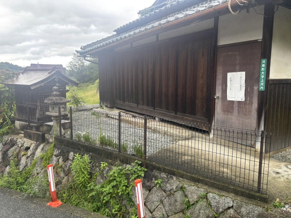 しばらく歩くと気になる風景が次々と出会いました。上にある道路沿いにある建物のようです。後で調べると今回バス停から歩いている道が大阪府道200号線上河内富田林線の道とは別に並行して道があり、下河内地区の集落にある家を繋いでいました。