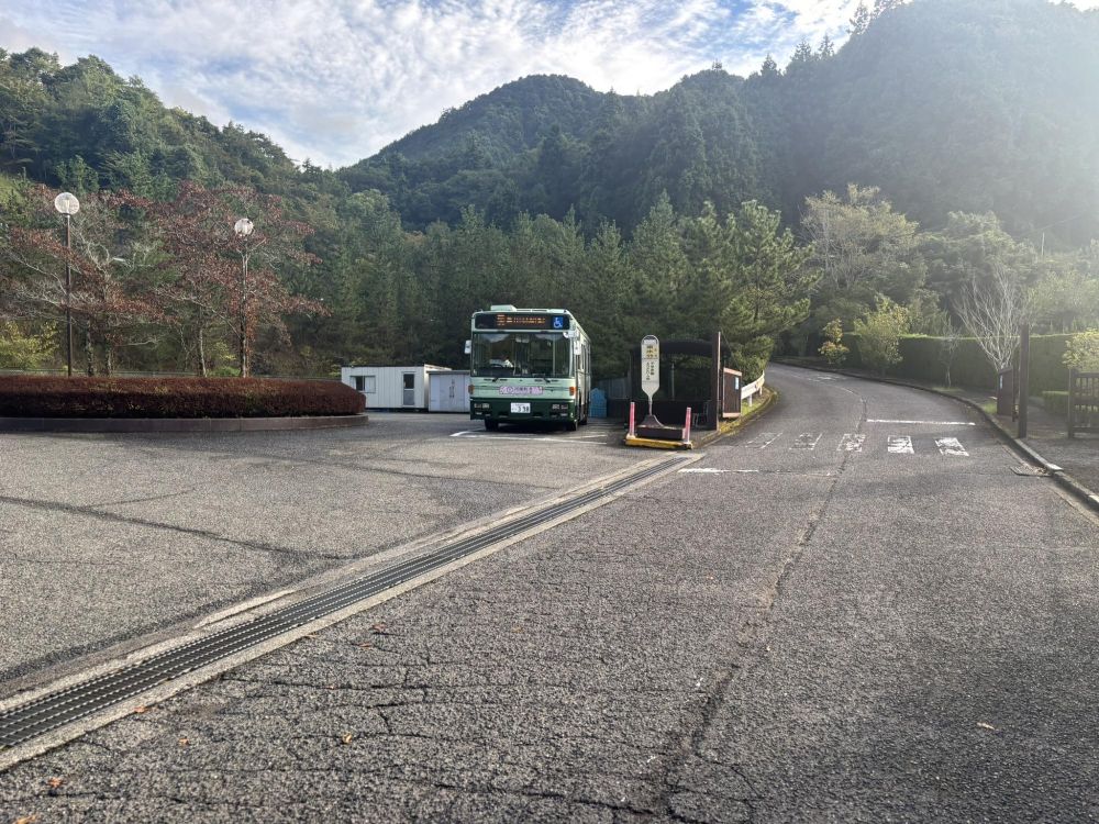 ここで千早赤坂村に入り、東水分バス停に来るとバスが待っていました。本数が少ないバス便なので、当初はここをあきらめて千早赤阪村役場まで歩くつもりだったのでラッキーでした。
