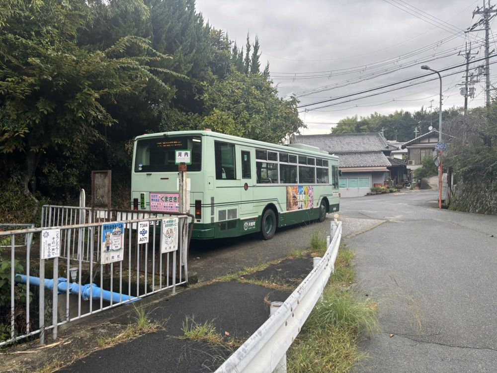 今回は歩いて来ていますが、河南町のやまなみタクシーの停留所があります。これを利用することで、上河内の山の中に行くと楽ですね。