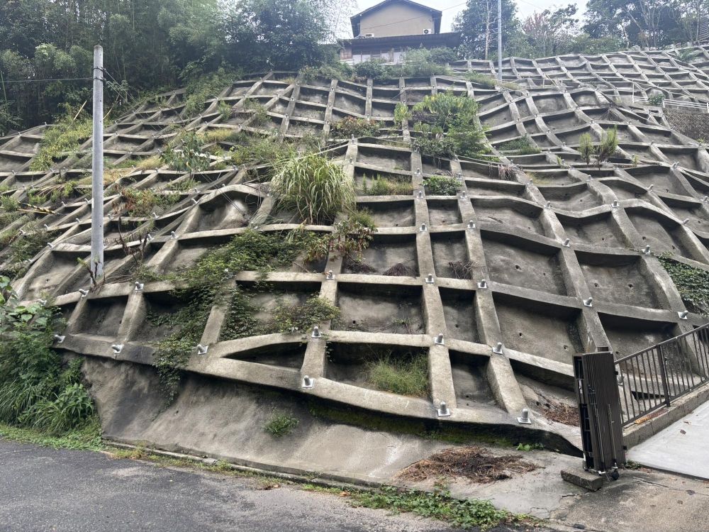崖をコンクリートで埋めている地点を過ぎていきます。