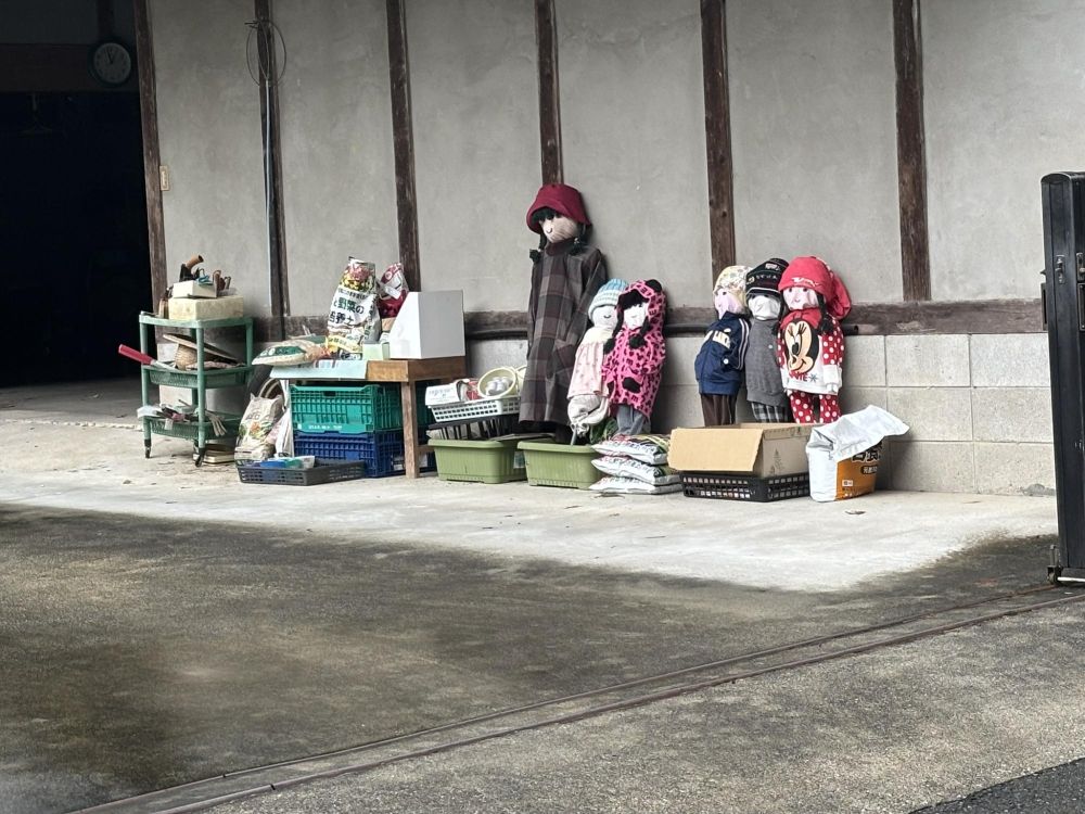 道路から見える位置に人形がいっぱい置いてあります。