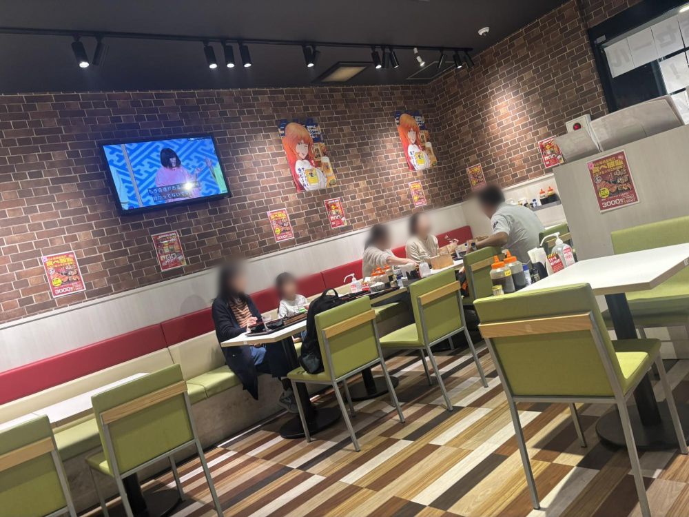 店内の様子です。外から見るよりも席数が多い印象です。日曜日の夜に訪問したのでテレビでは笑点が放映されていました。