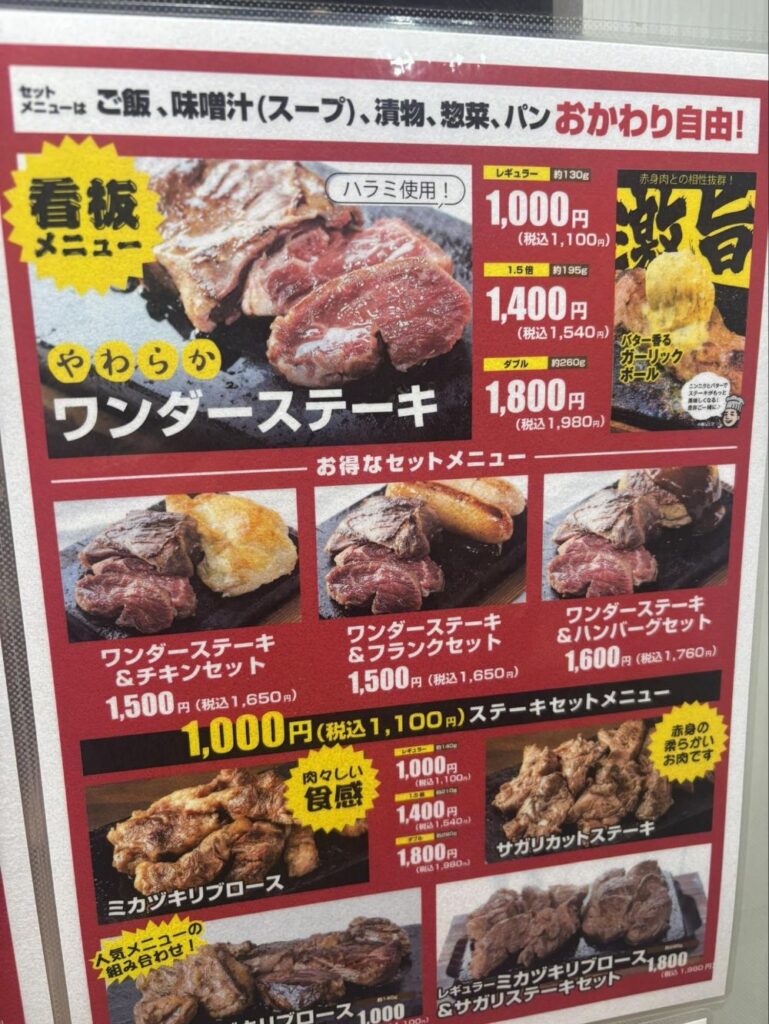 お店の閉店情報といえば、本来はここまでで、「悔いの残らいないようにお店に急ぎましょう」で終わるのが普通です。しかし、この日の私は空腹で、かつ無性に肉が食べたくて仕方がなかったので、ワンダーステーキさんで実食してみることにしました。