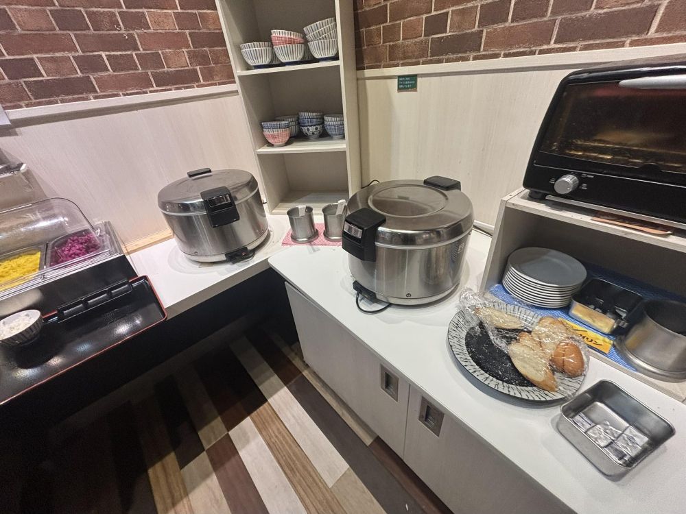 ただセットを注文したので、画像にあるようにごはん、みそ汁、漬物、総菜を取りに行きます。