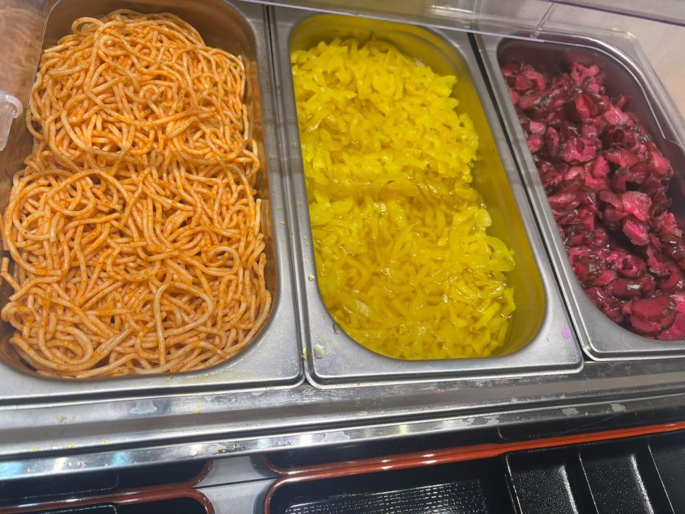 食べ盛りのお子さんが好きそうなトマトケチャップ味のスパゲティや弁当の添え物でよく見かけるお漬物が並んでいます。