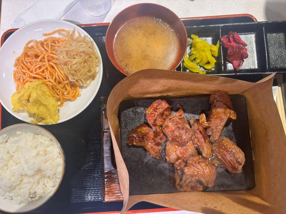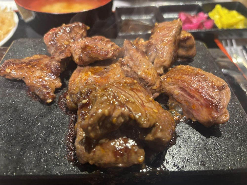 こちらが1000円の通常サイズです。ステーキの量が少なく感じるかもしれませんが、思ったほどボリュームがありました。
