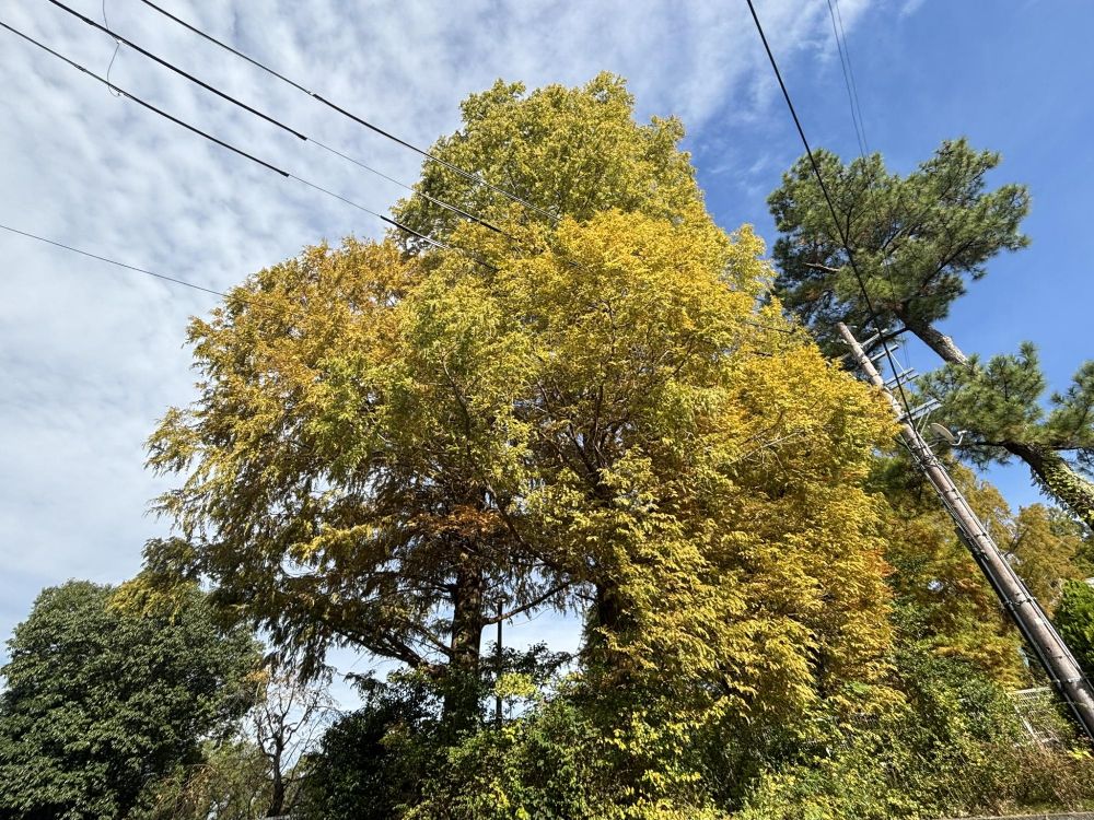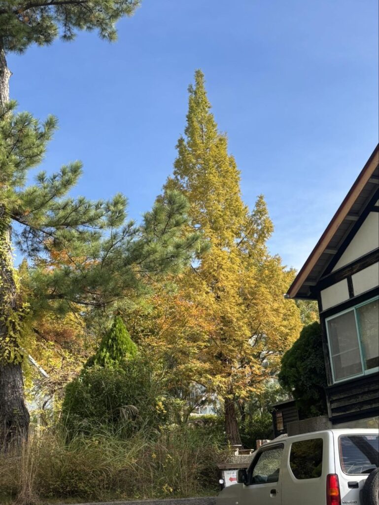 見えているのはライトアップされる予定のもみじでありませんが、黄色く色づいて綺麗ですね。わざわざ施設に入らなくても、外からでも紅葉の様子が伺えます。