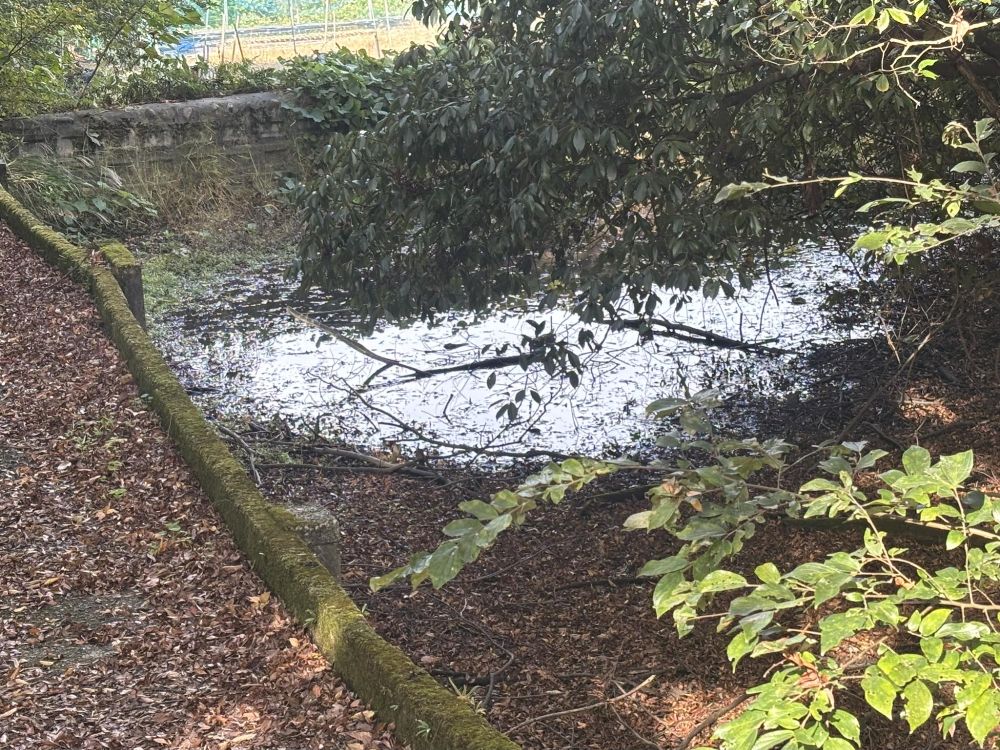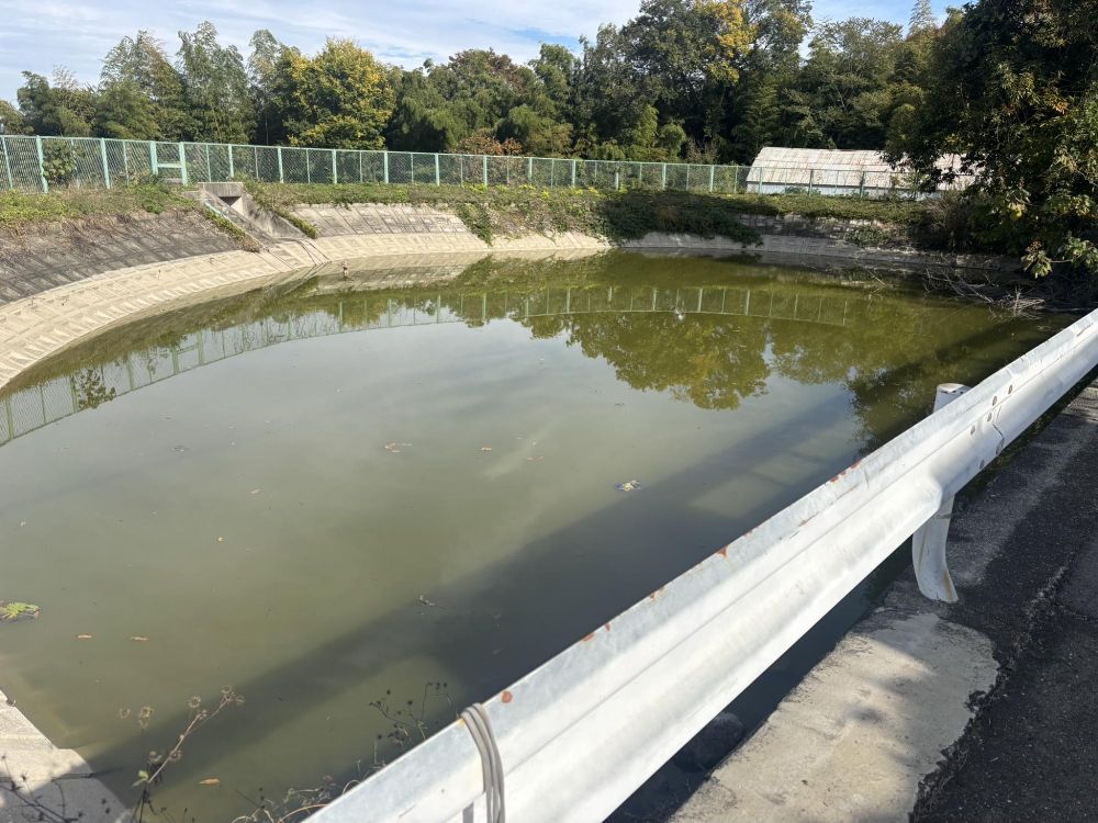 ため池がありました。全国農業用ため池(外部リンク)調べると高木向井池という名前がついていました。