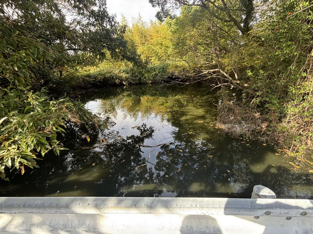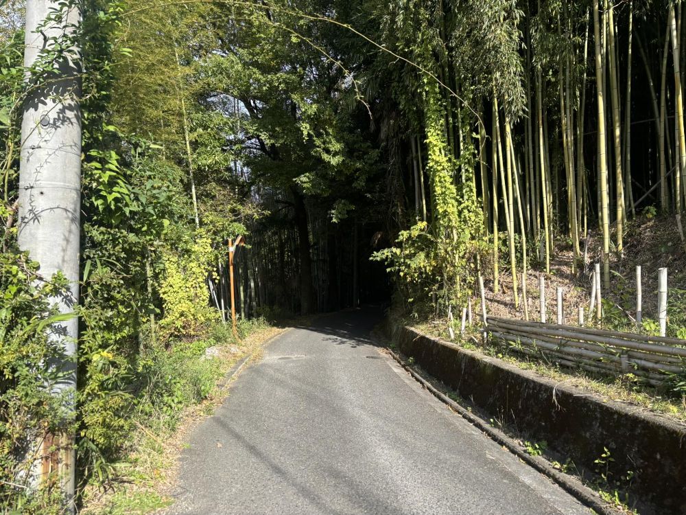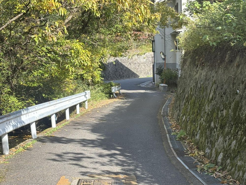 バス停から橋を渡らずに、右側にあるこちらの道を歩きます。歩いているときにほとんど車に出会わなかった道なので歩きやすいです。