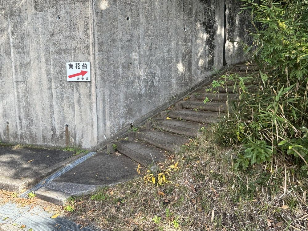 その手前に階段がありますが、徒歩で南花台に上がれる道です。