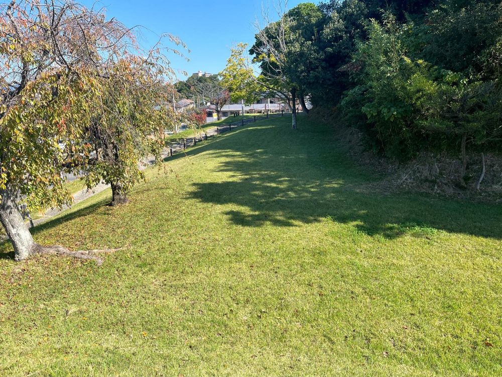 公園として整備されているので、両端が芝生に覆われています。