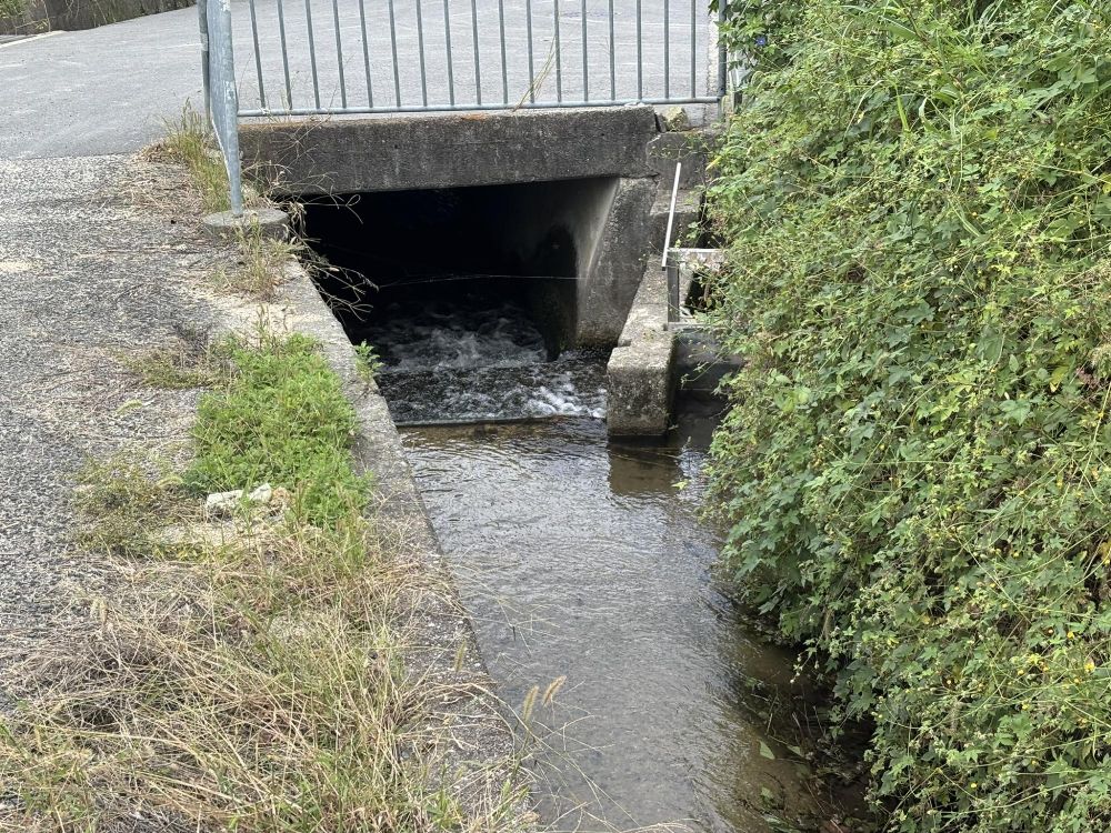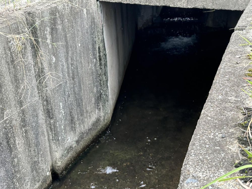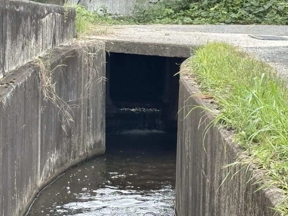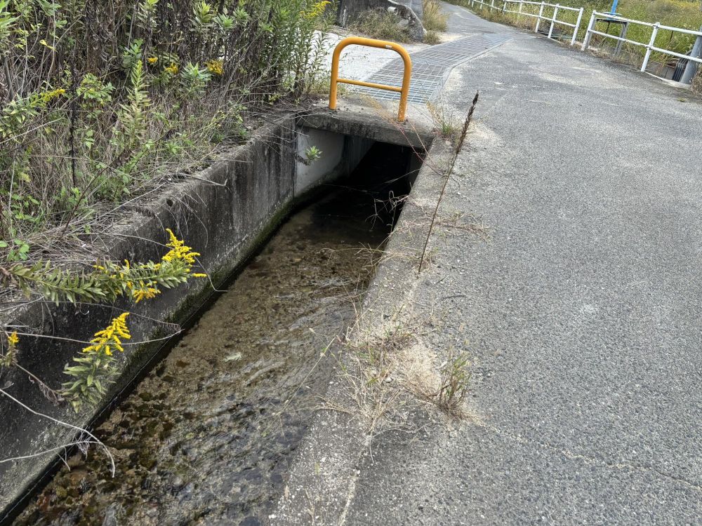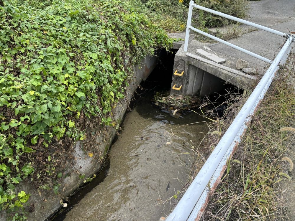 しばらく歩くと暗渠から水が出てきているのが見えます。