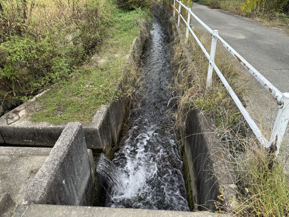 このあたりで、水路が富田林市と河南町の境界線のようになっています。