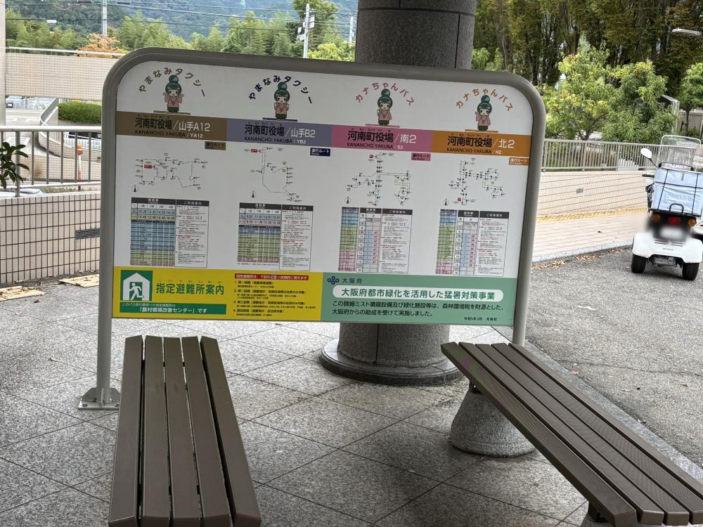 富田林別井から河南町に入ると河南町役場はすぐ近くです。ちょうどカナちゃんバスが入ってきていました。