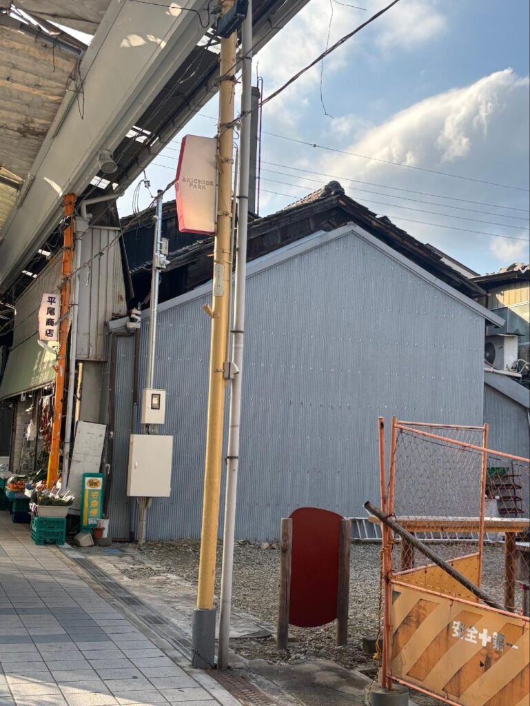 (駅前長野商店街で、一本だけオレンジではなくつまようじ色した柱がある)