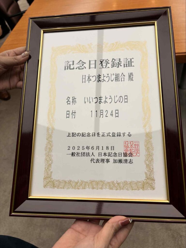 つまようじが細長いことから「11月11日」「11月1日」などの候補を打診されたそうですが、末延社長は難色を示しました。それはSNSのアンケートで日程を決めたという理由もありますが、それ以上に11月1日のように月初めは非常に記念日が多いこと、また11月11日は「ポッキー&プリッツの日」というとても強い記念日があります。そこで比較的他の記念日が少ない11月24日にこだわった結果、11月24日が「いい(11)つ(2)まよう(4)じの日」として認定されました。