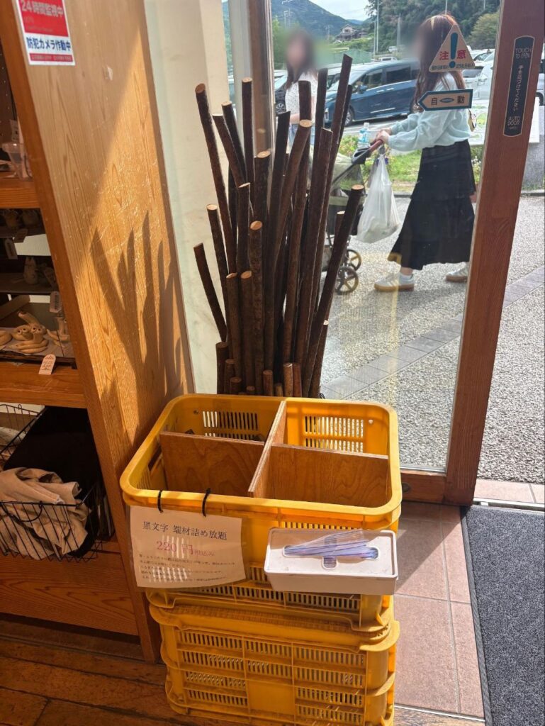 (くろまろの郷でつまようじの原料となる黒文字を販売)