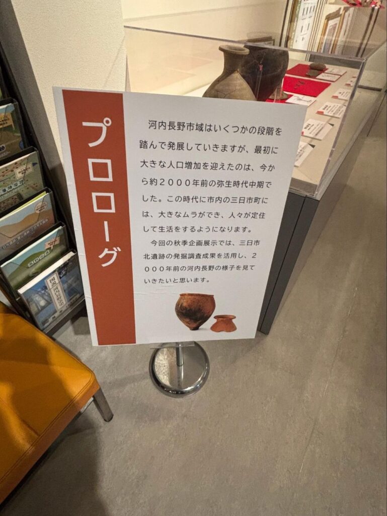 さて、来年の2月1日まで「三日市北遺跡と弥生時代の河内長野」の特別展が開催中です。