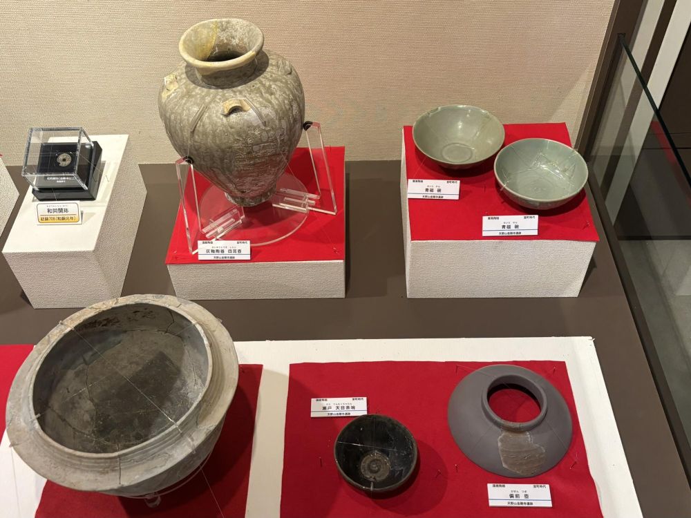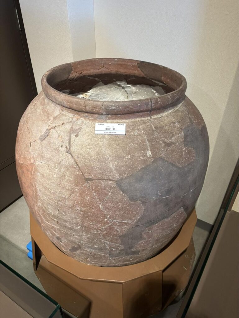 実際に土の中から出土したものが展示してあります。中には破片をつなぎ合わせてひとつの形にしたものがあります。