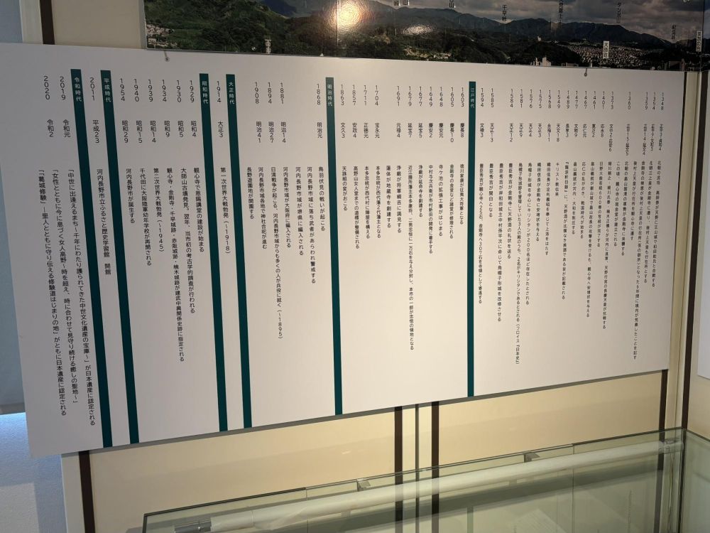そしてこれは圧巻だと思いました。太古から現在にいたるまで、河内長野に関係する部分だけを抜粋した年表です。
