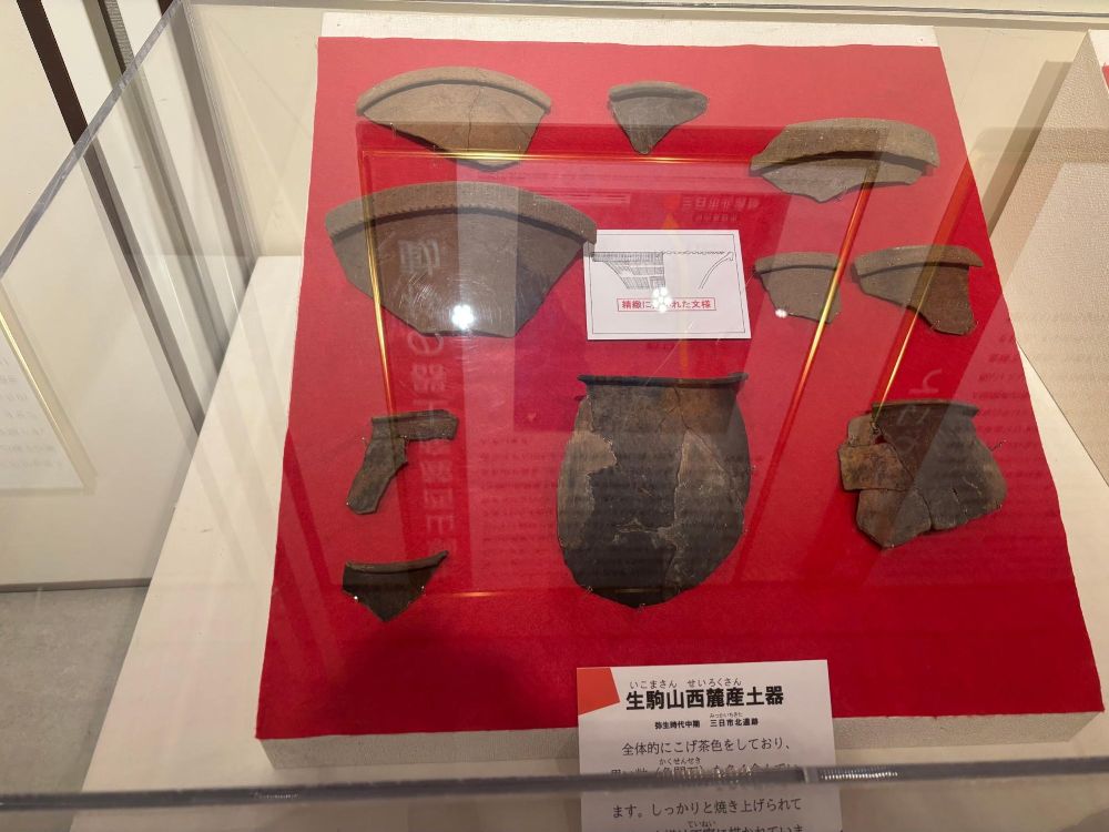 そして生駒山で生産された土器が三日市北遺跡で出土したということで土器が展示してあります。